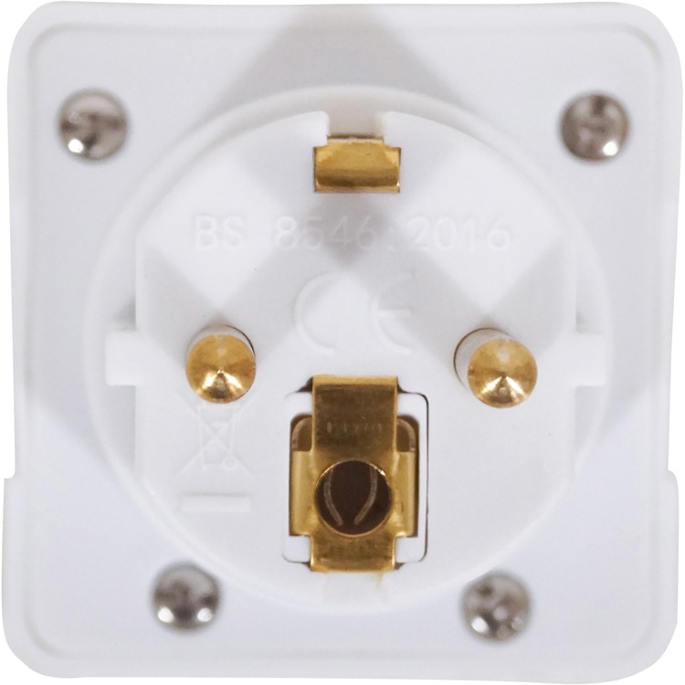 White Travel Adaptor Designed to Convert UK power To European 2 pin. Designed for European usage as a temporary travel adaptor. Converts standard UK 13A plug to Schuko 2 pin 10A. Supplied unpackaged / loose.