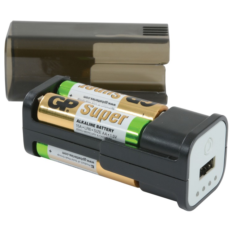 This compact, portable USB power bank allows devices to be charged from 4 AA batteries while on the move. Ideal for smartphones, tablet computers and many other devices.